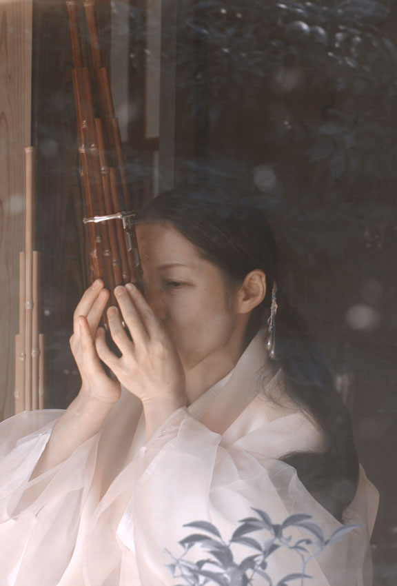 田島和枝 Tajima Kazue笙と正倉院復元楽器・?(う)の演奏。笙を豊英秋(元宮内庁楽部主席楽長)、宮田まゆみ、石川高に、古代歌謡と雅楽合奏を芝祐靖、右舞を豊英秋の各氏に師事。国立劇場雅楽公演、八ヶ岳高原音楽祭、タングルウッド音楽祭、ウィーン現代音楽祭、薬師寺観月祭、坂本龍一・地雷ゼロキャンペーン、岡野玲子・陰陽師CD参加等、雅楽古典曲から現代曲まで多方面で演奏する。笙一管での調子の演奏をライフワークとし、またソロ活動として様々な演奏家と共演。「おとのひとひら」主宰。「伶楽舎」に所属。 |