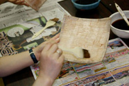 3.和紙をちぎって、両面に貼る。