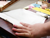 印刷のことを考えると、手漉き和紙も最後には耳を落とされて製品となります。ワシゾーでは流通にのせることを意識していません。作業効率より、ぬくもりの手触りを大切にした、個性あふれるものづくりをこころがけています。