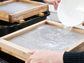 ワシゾーストアは販売するだけでなく、商品と同じものを作ってもらう紙すき〈ワークショップ〉も行っています。自分で作ることで、自分好みにカスタマイズすることもできますし、以後ご自宅で同様に制作することができます。
