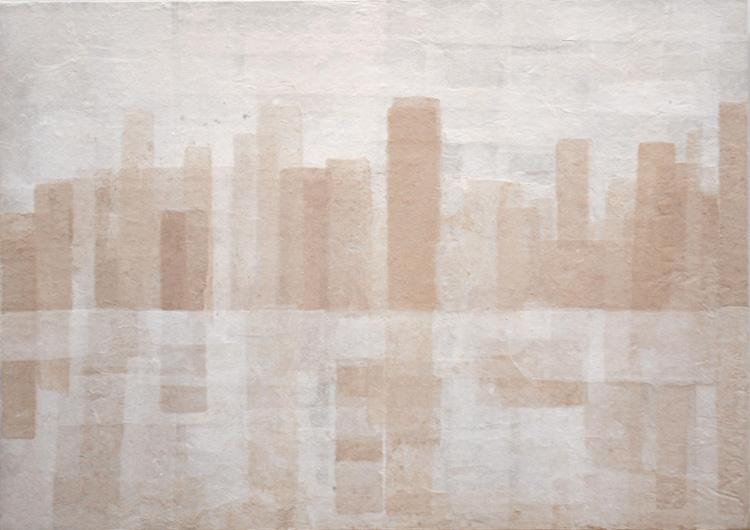 来場者の感想 「ある街の風景---濃淡の色彩がうまく生かされていた」 「和紙本来の色でシンプルなんだけど、見ている人に想像させるような作品」 |