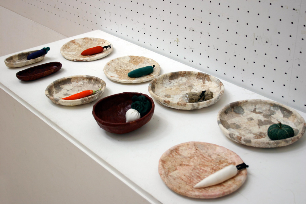 来場者の感想 「表面の肌ざわりがおもしろく、遠くからみたら陶器のようにみえました。色合いが好きです」 |