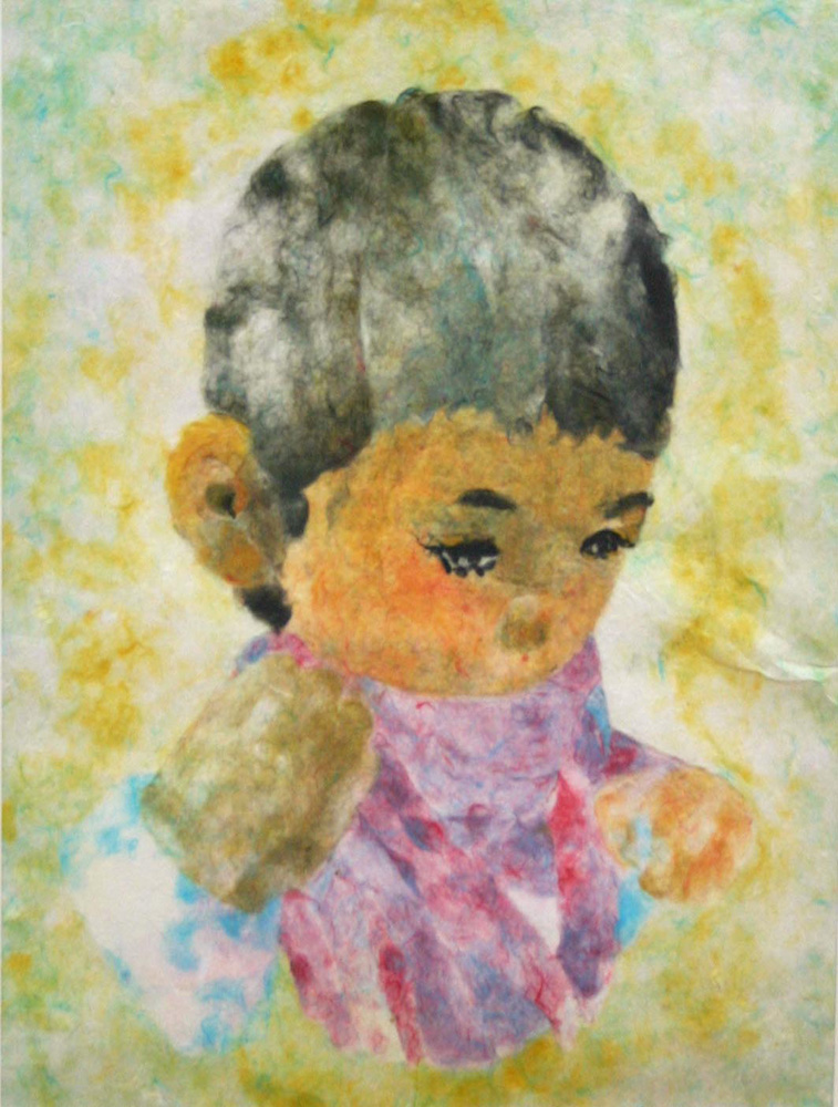 「ふでや版画等いろいろありますが、紙特有のふんいきが独特の味が出ているようです」