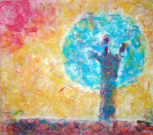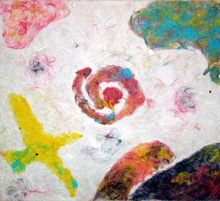 ただの紙漉きではつまらない、植物の繊維(楮:こうぞ)を絵の具にして絵を漉き込もう!