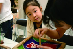 色鉛筆や筆で描くのとは違い、植物の繊維を絵の具とし、水で漉き込む新しいアート「和紙造形」。これまでにない新しい感性を刺激することで、子どもの持つ柔軟な創造力がより自由に発達する。
